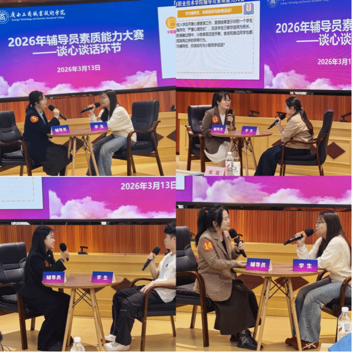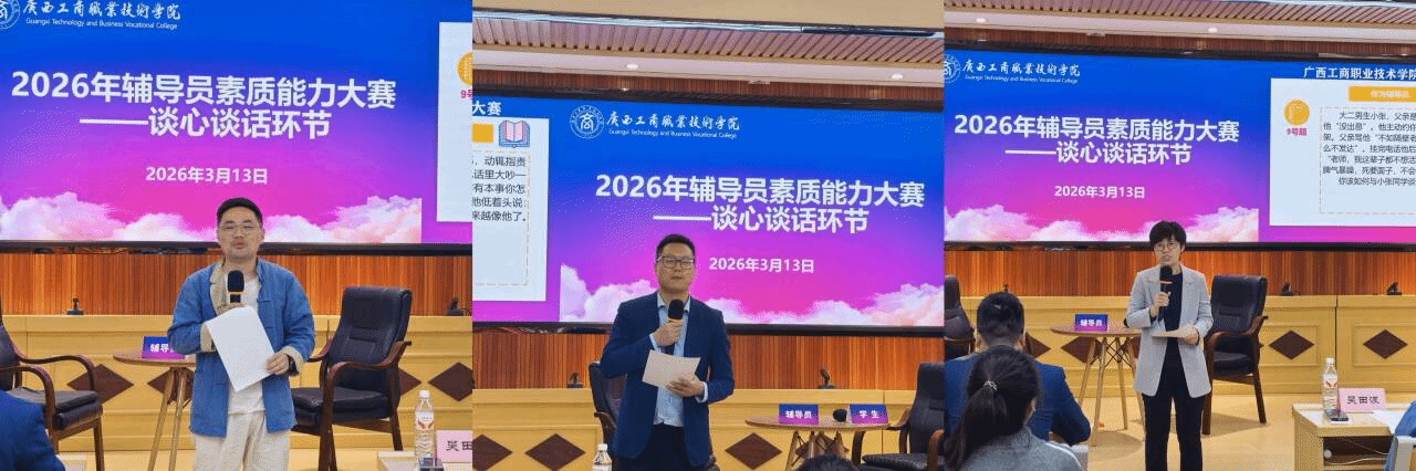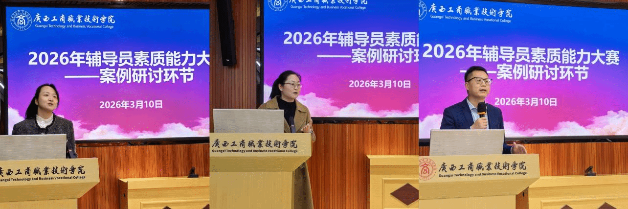 为深入学习贯彻习近平新时代中国特色社会主义思想,贯彻落实党的二十大和全国教育大会精神,近日,广西工商职业技术学院2026年辅导员素质能力大赛圆满落下帷幕。全体专兼职辅导员参加,比赛组织有序、程序规范、亮点突出。