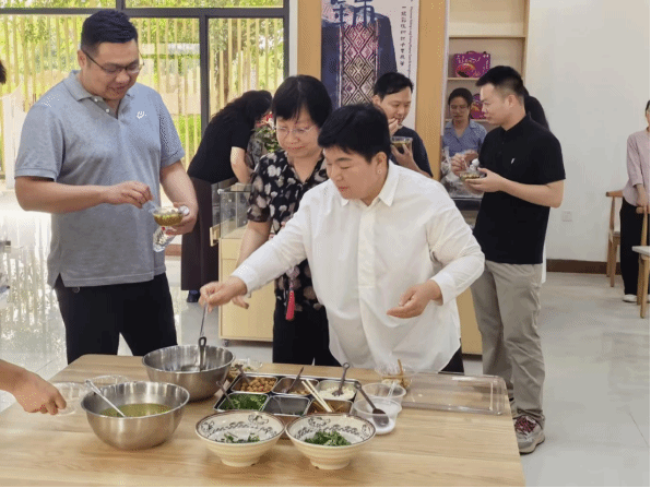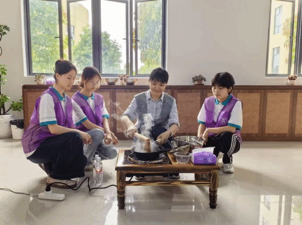 此外,活动现场还设置了“打油茶”文化小课堂,讲述油茶的历史典故与药用价值。师生们可在指导下亲身体验用特制茶槌和油茶锅“打油茶”的全过程。在“一锤一打”间感受非遗魅力与匠人精神,在慢火熬煮茶汤的烟火气中,感受这一人类非物质文化遗产代表项目的技艺精髓与待客礼仪,同时在协作劳动中体验分享的乐趣。