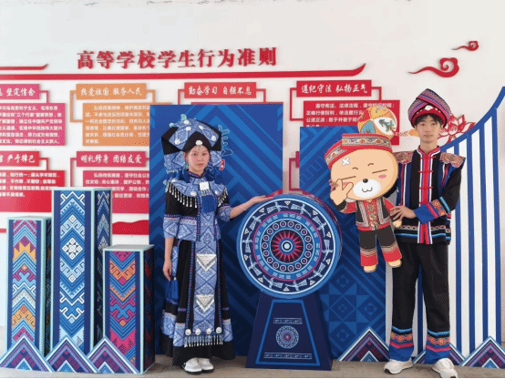 (图五:学生身着民族服饰,在主题打卡区合影留念)