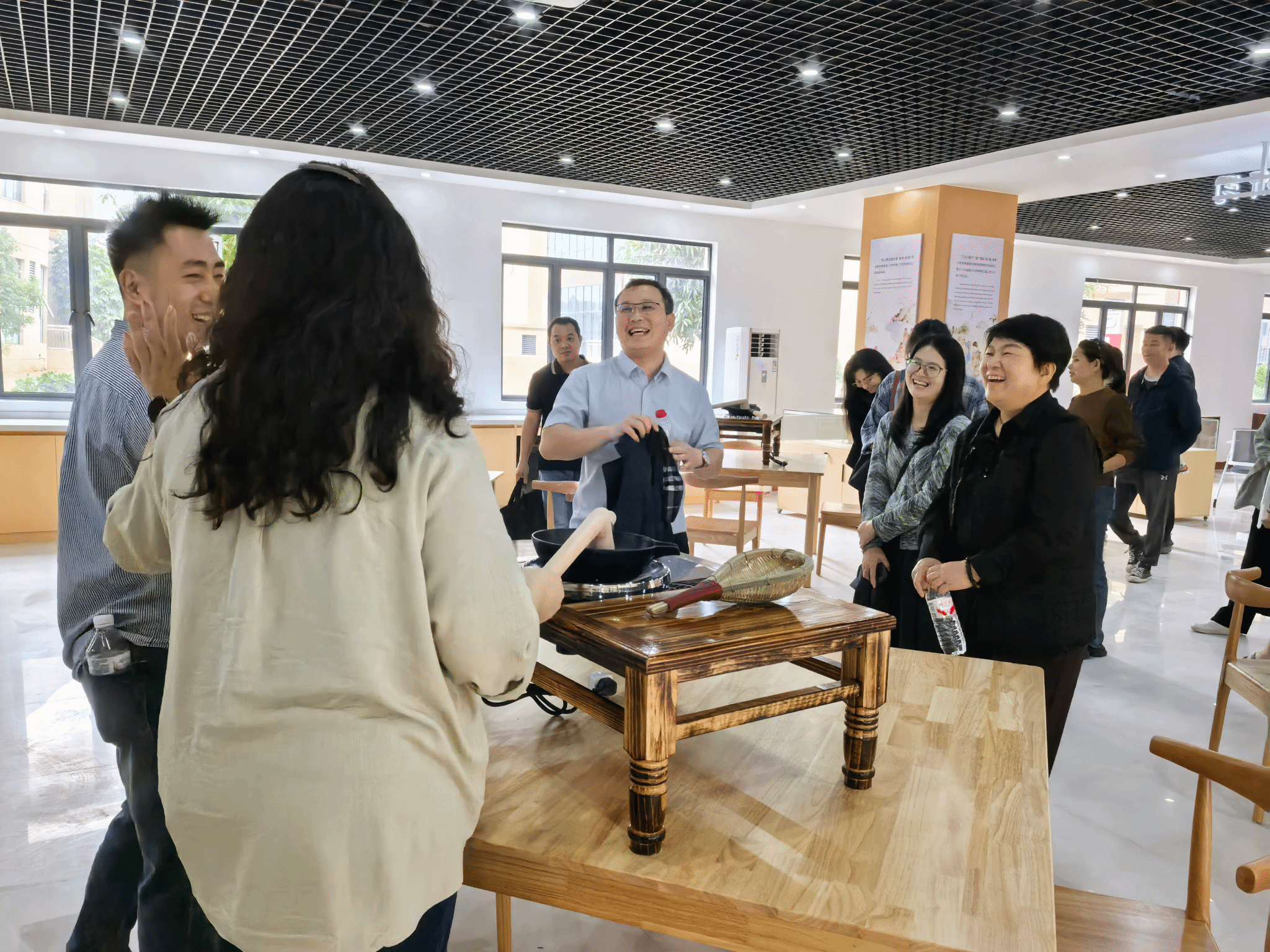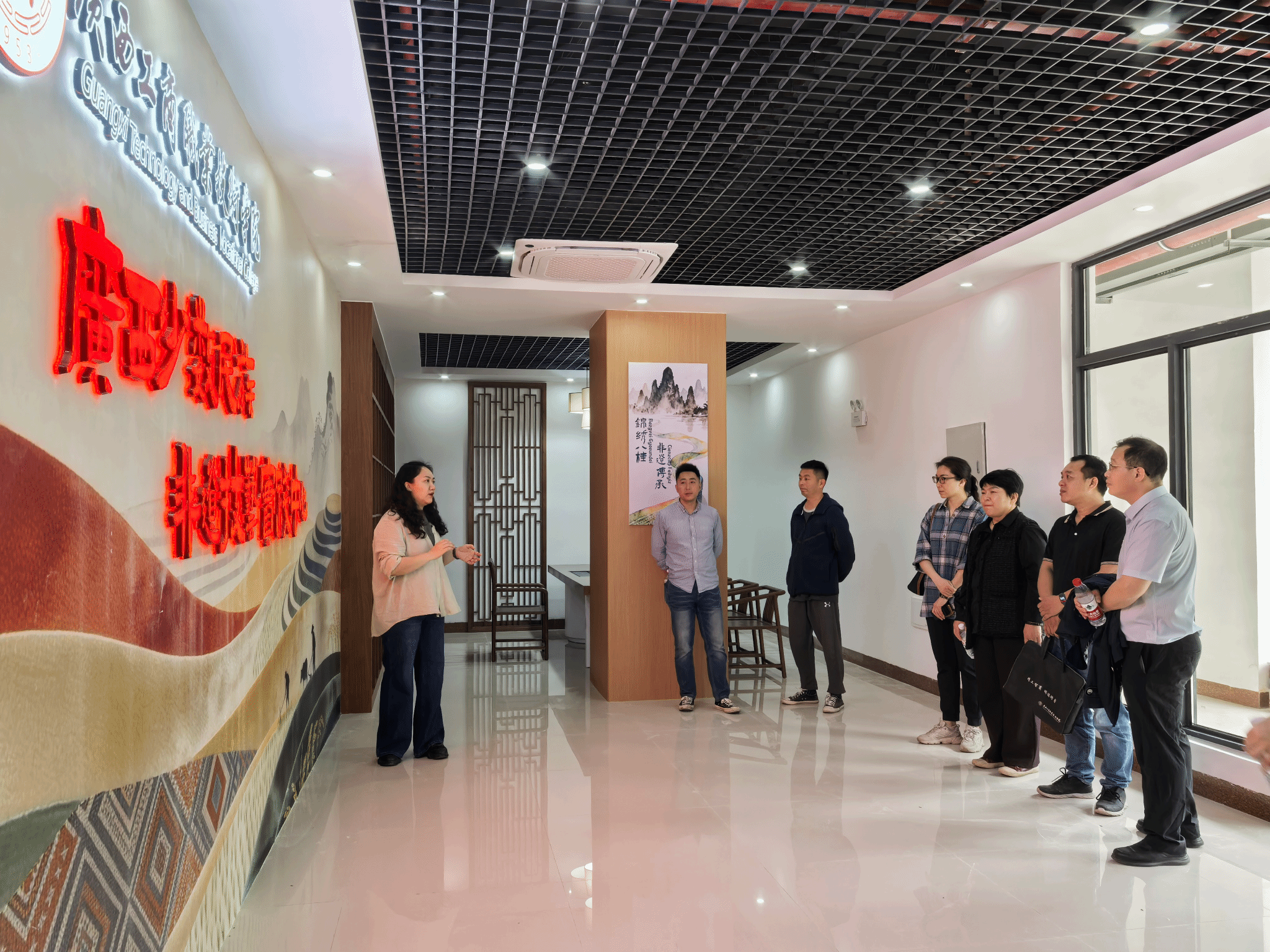 最后,党员团队前往资助育人实践基地,查看非遗文化体验区和“农耕文化”体验区建设进度,了解基地各功能板块情况,并结合资助育人工作,为基地后续开放运营、活动策划等提出建设性建议,助力提升基地育人效能。